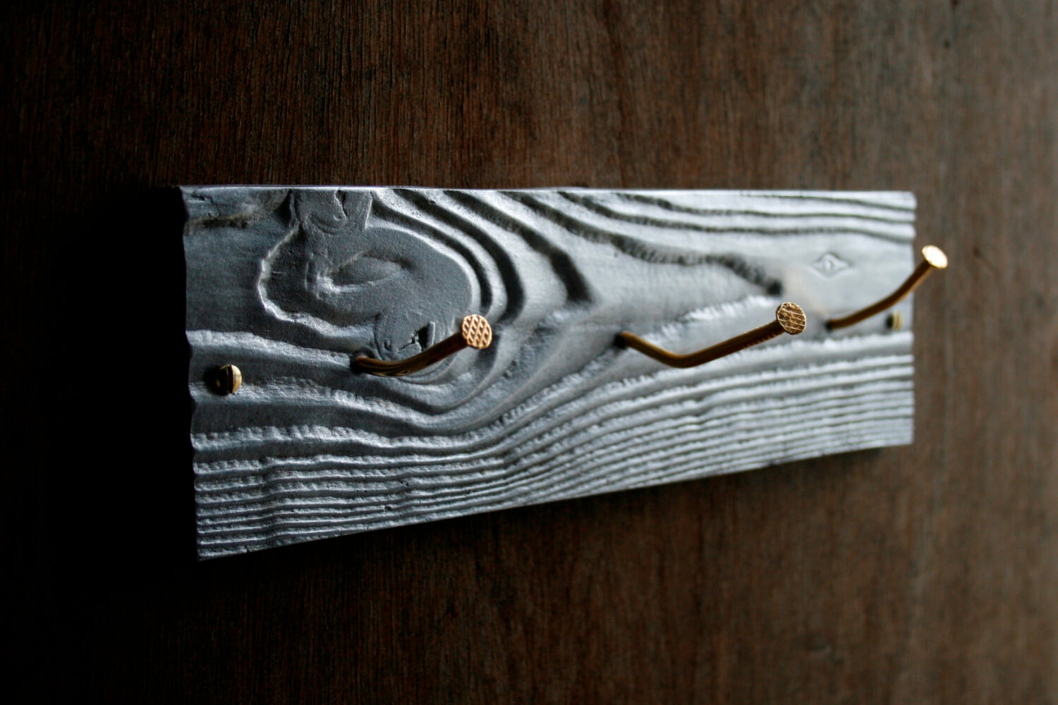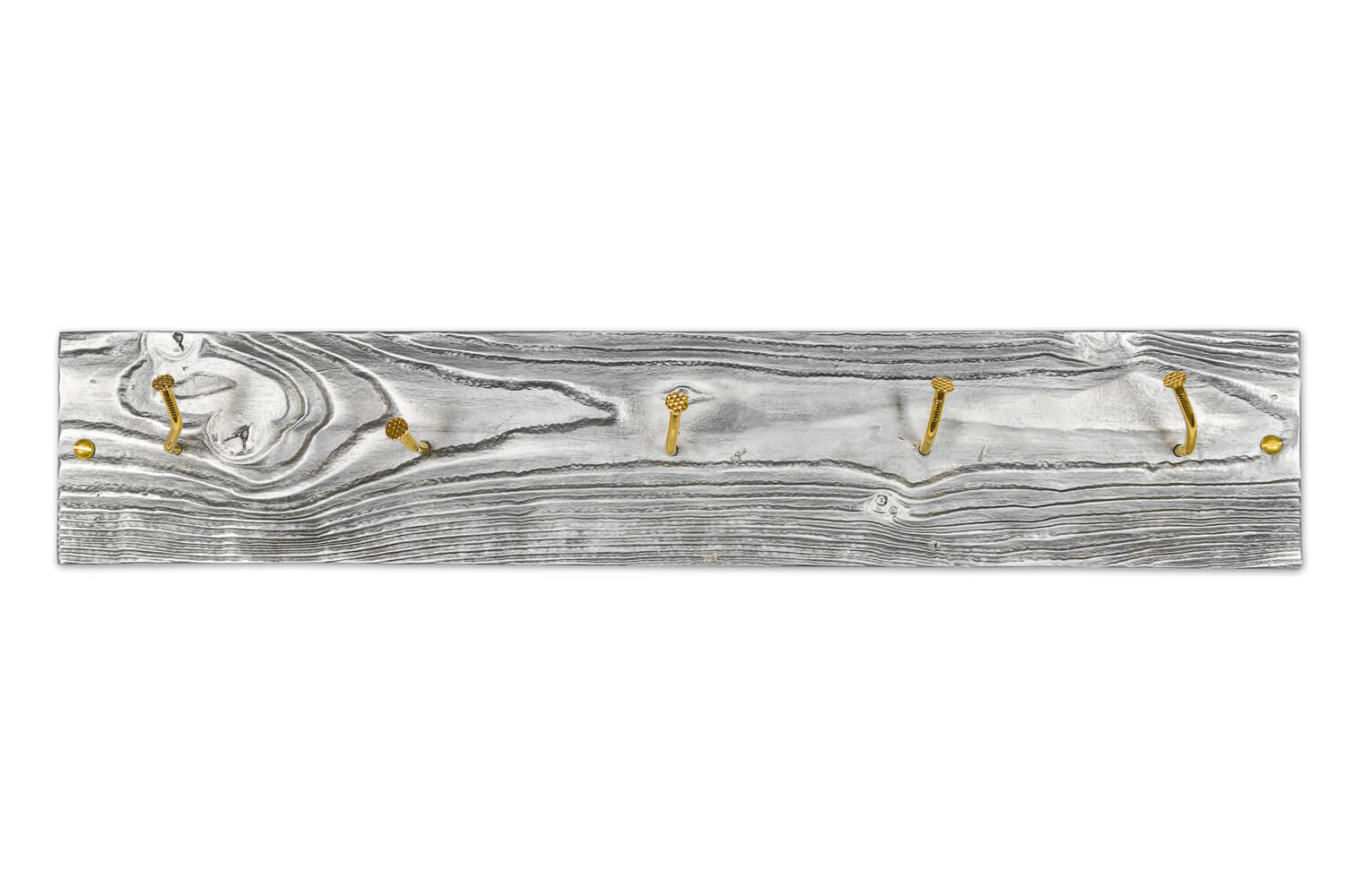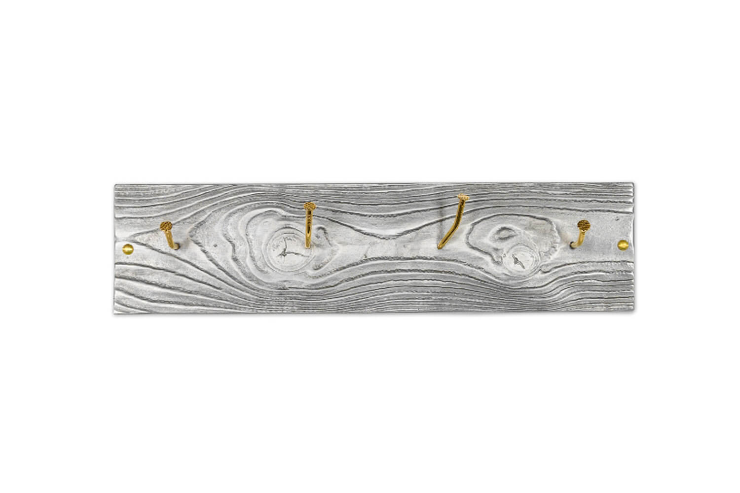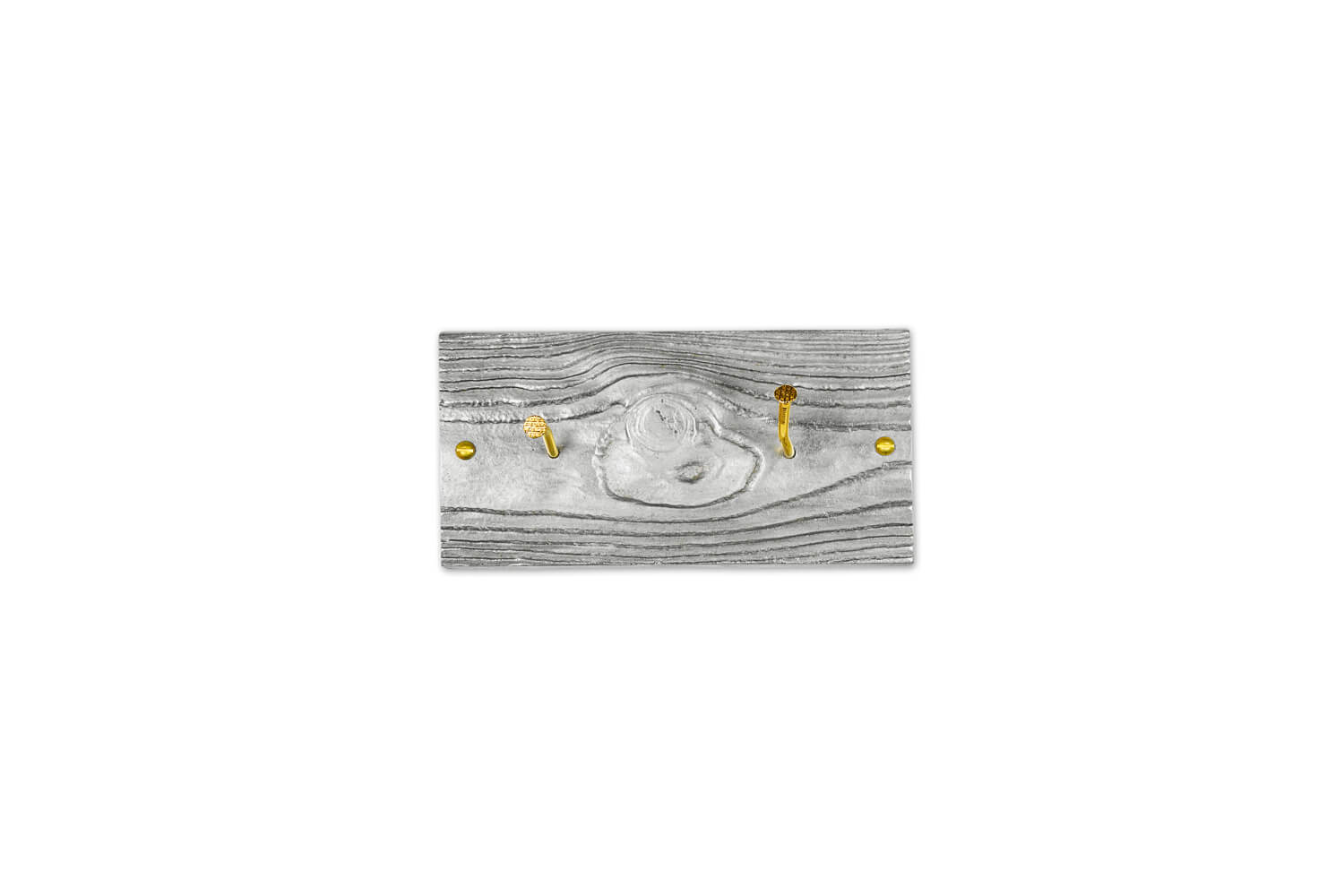 Met CROOKED NAILS gaat Studio Woest ‘back to basic’. Een houten plank met kromme spijkers is het toonbeeld van de kapstok in de werkplaats. In de serie CROOKED NAILS is dit principe als uitgangspunt genomen om tot een uniek en eigenzinnig nieuw product te komen. Het plankje dat gebruikt is in dit ontwerp lijkt op het eerste gezicht van hout, maar is gegoten aluminium. De kromme spijkers zijn verguld, waardoor de kapstok een compleet andere uitstraling krijgt. In CROOKED NAILS is niets wat het lijkt!