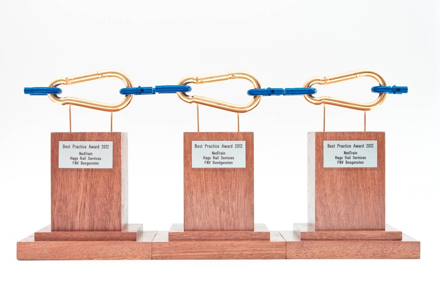 Studio Woest heeft voor ‘Stichting Raad voor Arbeidsverhoudingen Schoonmaak- en Glazenwassersbranche’ (RAS) een aantal promotieproducten ontworpen. De belangrijkste taak van de stichting is het vervullen van een adviserende rol binnen de branche. De Best Practice Award die Studio Woest heeft ontworpen en geproduceerd wordt uitgereikt aan de bedrijven die de ‘Code Verantwoordelijk Marktgedrag’ in de schoonmaak- en glazenwassersbranche het beste in hun bedrijfsvoering implementeren. De Bad Practice Award is voor het bedrijf dat deze regels niet voldoende naleeft en/of negeert.